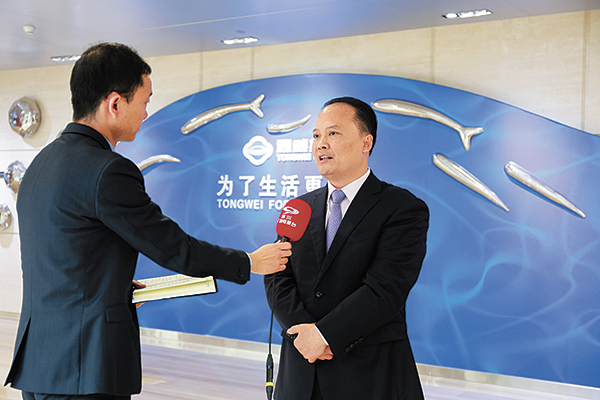 劉漢元主席接受四川電視臺專訪本報訊(記者 唐勝)2月10日上午,四川日報、四川電視臺、華西都市報、成都商報、每日經濟新聞、四川經濟日報、企業家日報等10余家省內主流媒體聚焦通威,就企業家精神、創新創業、宏觀經濟、霧霾問題、新能源產業發展、稅費改革、“漁光一體”、“互聯網+”等諸多話題與十一屆全國政協常委、通威集團董事局劉漢元主席深入交流與互動。