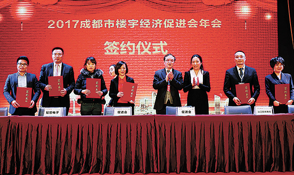 會議期間,秉承共享經濟時代,攜手共贏未來的發展愿景,成都市樓宇經濟促進會還與通威傳媒等多家單位舉行了戰略合作簽約儀式,共同促進成都市樓宇經濟健康發展。