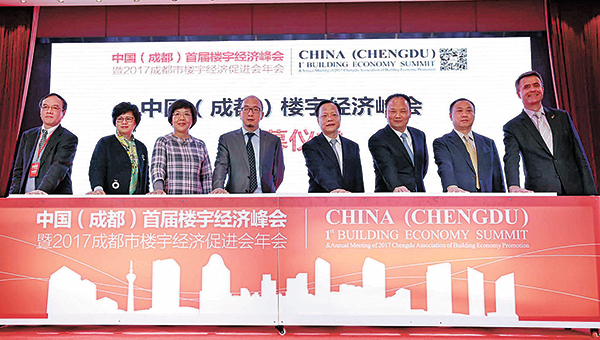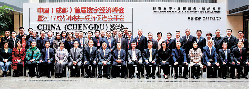 本報訊(記者  陳永超)2月23日,由成都市樓宇經濟促進會主辦、每日經濟新聞聯合主辦的“2017中國(成都)首屆樓宇經濟峰會暨成都市樓宇經濟促進會年會”在通威國際中心隆重舉行。成都市市長助理韓春林,四川省商務廳副廳長楊春軒,成都市商務委主任郭啟舟,十一屆全國政協常委、通威集團董事局劉漢元主席,成都市樓宇經濟促進會理事長張懷林,成都市樓宇經濟促進會秘書長張萍,通威集團副總裁黃其剛,通宇物業總經理孫斌、副總經理崔維順,通威傳媒總經理甘曉飛出席大會。全聯房地產商會商業地產研究會會長王永平、九龍倉中國置業有限公司總經理(營運)侯迅、戴德梁行大中華區副總裁陶汝鴻等200多家企業代表和500多名樓宇經濟專業人士匯聚一堂,共同探討優質樓宇的未來發展之路。