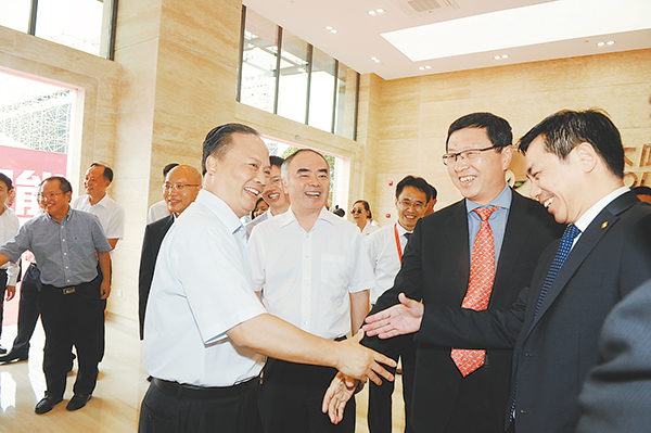 劉漢元主席與陽(yáng)光電源股份董事長(zhǎng)曹仁賢、協(xié)鑫(集團(tuán))控股副董事長(zhǎng)兼協(xié)鑫集成總裁舒樺等親切交流