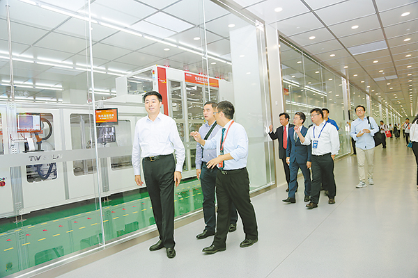 在通威太陽(yáng)能成都生產(chǎn)基地S2車間里,一支支特殊的機(jī)械臂有序揮舞,一輛輛無(wú)人駕駛的IGV智能小車往來穿梭,12條全封閉的智能制造高效太陽(yáng)能電池片自動(dòng)化生產(chǎn)線高速運(yùn)轉(zhuǎn),通威打造的“智能制造”樣本給蒞臨的嘉賓留下了深刻印象。尤其是得知通威太陽(yáng)能成都生產(chǎn)基地一期1000MW電池項(xiàng)目?jī)H用時(shí)7個(gè)月便建成投產(chǎn),而今年雙流二期2000MW電池項(xiàng)目建設(shè)在產(chǎn)能規(guī)模和工程量都翻了一倍的情況下,所用時(shí)間依然為7個(gè)月,大家紛紛表示震撼,贊賞通威創(chuàng)造了行業(yè)奇跡、全球紀(jì)錄。