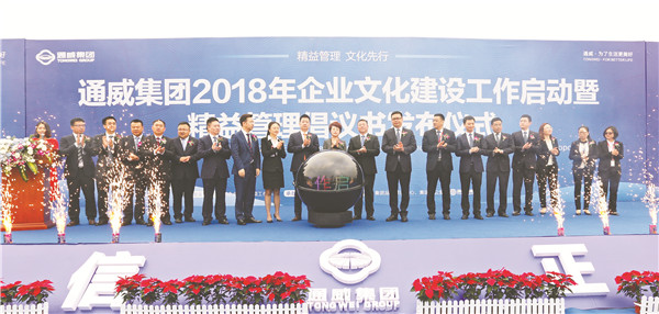 禚玉嬌總裁等領(lǐng)導(dǎo)共同啟動了集團(tuán)2018年企業(yè)文化建設(shè)工作,并作重要指示。禚總指出,在劉主席的帶領(lǐng)下,通威將創(chuàng)業(yè)時期一直堅持的艱苦奮斗工作精神和誠實守信的商業(yè)思想豐富升華到作為一個企業(yè)的社會責(zé)任,并逐步形成了一套完整的通威企業(yè)文化體系,經(jīng)過不斷積淀、完善,成為了集團(tuán)堅實的文化根基。