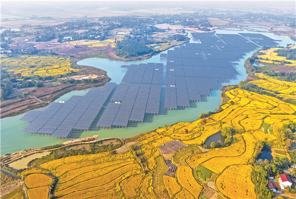通威位于安徽安慶懷寧方家湖的“漁光一體”光伏發電項目