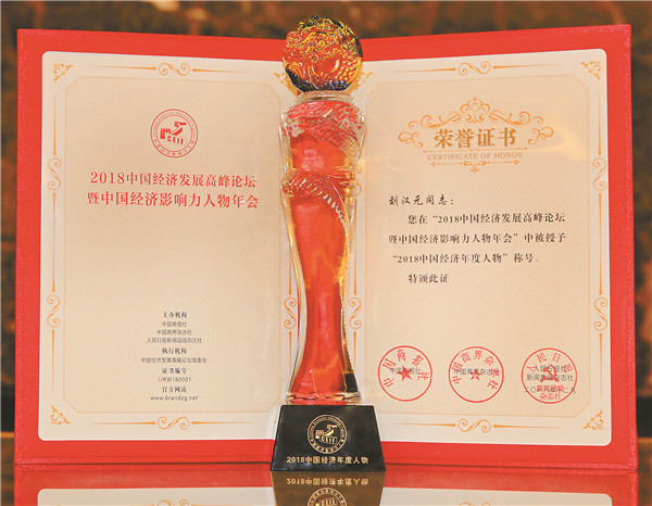 劉漢元主席榮膺“2018 中國經濟年度人物”殊榮