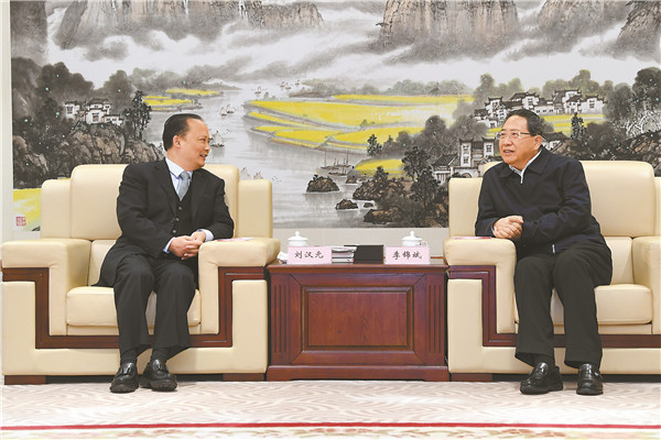 安徽省委書記、省人大常委會主任李錦斌與劉漢元主席親切交談