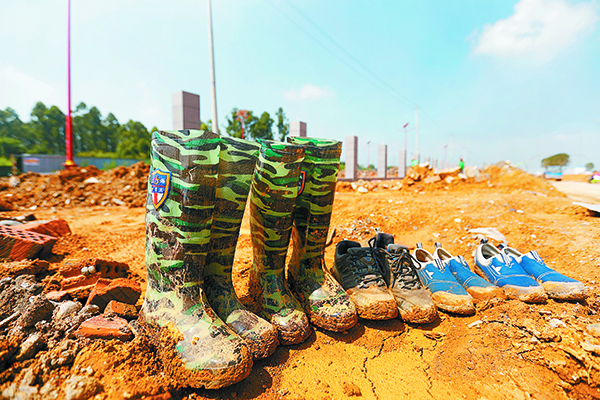 看著記者們“毫無準備”,王剛拿來了膠鞋和礦泉水,指了指“你們這樣的鞋,進去走上一圈就報廢了,工地上容易中暑,要多喝水。”做完準備工作,王剛帶著我們,像平常一樣開始了工地巡查。“水排得如何了,一定要注意安全”“圍墻的勾縫要更飽滿一些。”每到一處,王剛都要仔細查看和了解,一旦發(fā)現(xiàn)不合格的地方,現(xiàn)場與施工方負責人員溝通協(xié)調,提出整改意見。