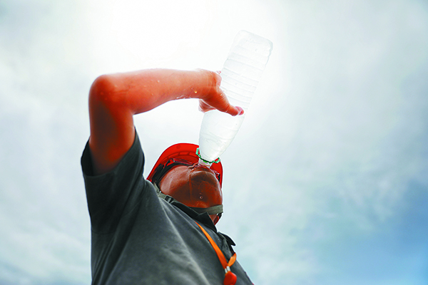 高溫下王剛補充水分