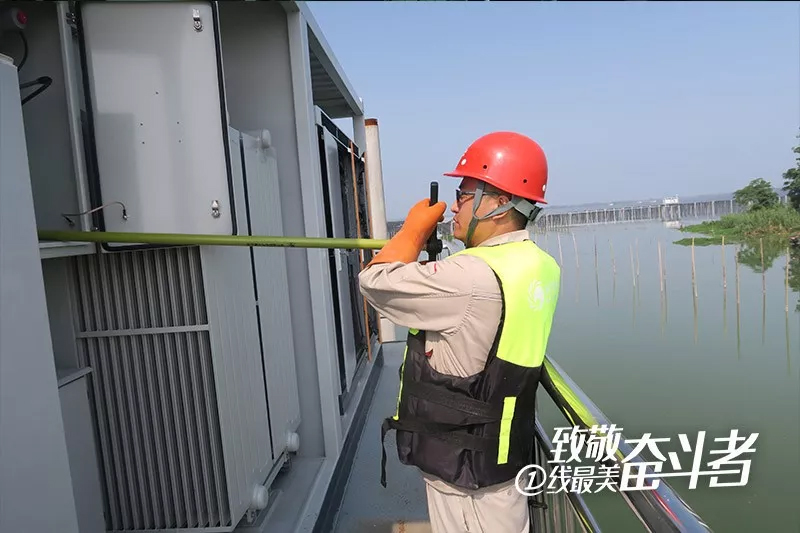 兩天兩夜,在跟拍項目經理部總指揮時,聽到了很多工程建設的趣事,說是趣事其實也是難事,聽他娓娓道來時,卻沒有一絲吃苦受累、忍受寂寞的委屈。酷暑中跟隨運維人員一道深入湖區消缺,看著他們苦中作樂笑稱“水上餐廳”時,我們被他們的樂觀感染。
