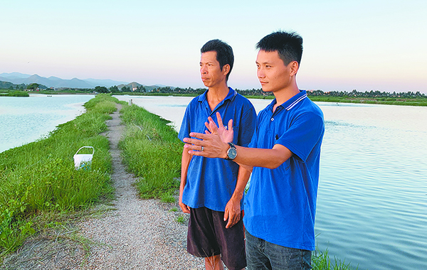 南粵8月的陽光與塘頭的暑氣令人眩暈,收蝦的時候記者跟隨朱俊杰在塘頭暴曬了一個多小時,汗流浹背、頭皮發燙。下午3點,他又頂著烈日酷暑為客戶做測水實驗。迎著朝霞出門,披星戴月歸家。我一直在想,到底是什么力量,讓一位行政管理專業畢業的大學生,能夠常年扎根在條件最為艱苦的水產養殖一線?