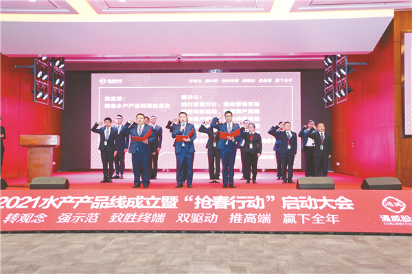 鷹擊長(zhǎng)空,魚翔淺底。2月18日開工以來,遵照劉漢元主席“聚焦聚勢(shì)、揚(yáng)長(zhǎng)砍短、執(zhí)行到位、高效經(jīng)營(yíng)”的指示,通威股份召開水產(chǎn)產(chǎn)品線成立暨搶春行動(dòng)啟動(dòng)大會(huì),三大產(chǎn)品線全面啟動(dòng)。同時(shí)各戰(zhàn)區(qū)、各分子公司相繼召開迎戰(zhàn)2021誓師大會(huì),向2021年全新市場(chǎng)目標(biāo)發(fā)起沖刺。