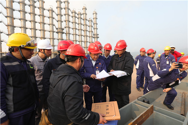 永祥股份總經(jīng)理兼永祥新能源總經(jīng)理李斌檢查工程建設(shè)中的“清單管理”工作