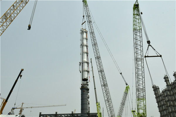 永祥新能源二期項目首臺精餾塔全段成功吊裝