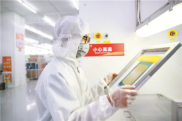 通威太陽能電池五廠生產部經理李小冬正在檢查網版