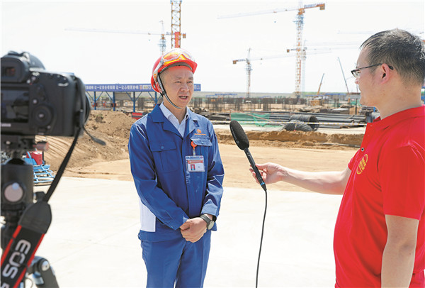 11點,陽光肆無忌憚地直射下來,高溫炙烤著大地,但阻擋不了內蒙古通威高純晶硅二期項目建設的熱潮。運輸車、灑水車輛來回穿梭,打樁機、挖掘機、吊裝機轟鳴,在高高低低的塔吊下,各裝置區建設初具雛形,員工精神飽滿,有序開展各項工作。袁總走進施工現場,查看混凝土澆筑情況,與參建單位對照施工計劃表,了解施工痛點堵點,提出糾偏措施,把項目建設協調會開到現場,確保項目建設有序高效推進。