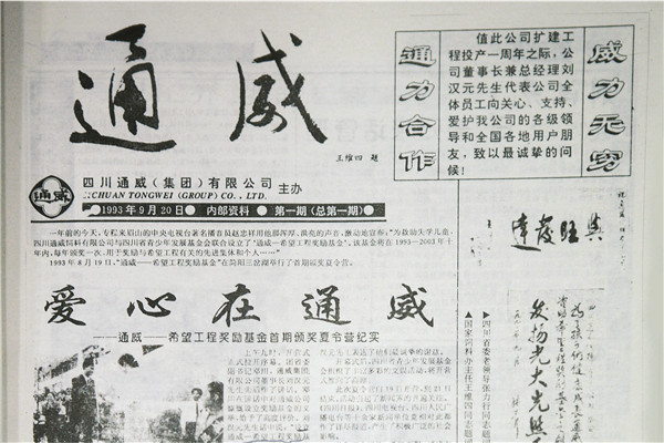 企業(yè)文化是用來(lái)感染人的,因此,它的傳播與提煉很重要,通威文化需要專門的傳播平臺(tái)。在這樣的背景下,90年代初,《通威報(bào)》正式創(chuàng)刊,劉漢元主席高度重視并擔(dān)任第一任總編。報(bào)頭上的“通威”二字由原農(nóng)業(yè)部全國(guó)飼料工業(yè)辦公室主任、高級(jí)經(jīng)濟(jì)師王維四題寫。