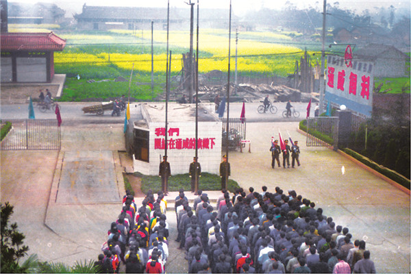 在早期的通威,對(duì)于多數(shù)來(lái)自農(nóng)村的青年員工而言,這種最普通又最莊嚴(yán)的儀式和易懂的歌詞,喚醒了員工內(nèi)心的神圣感,廣泛有效地傳遞了公司基本的價(jià)值觀,形成一種激勵(lì)和凝聚,促進(jìn)了員工自覺(jué)增強(qiáng)工作激情和組織紀(jì)律性。每次升旗儀式之后,公司的重大事項(xiàng)如上級(jí)領(lǐng)導(dǎo)來(lái)訪、獲得獎(jiǎng)項(xiàng),或者新制度的頒布、本周獎(jiǎng)懲情況等各種消息,現(xiàn)場(chǎng)向員工通報(bào),小小的升旗廣場(chǎng)也成為了早期員工了解公司資訊的重要平臺(tái)之一。從此,升旗儀式成了全體通威人的慣例。