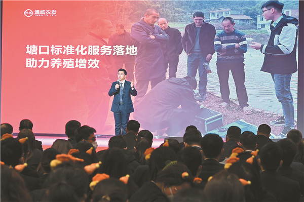 通威股份農牧總裁、通威農發總經理郭異忠為“標準引領 管理提升”主題征文一等獎獲獎員工頒獎