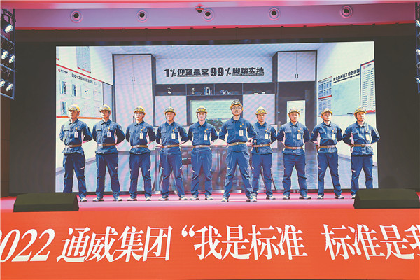 自2022年度企業文化建設工作正式啟動以來,集團旗下各產業板塊緊緊圍繞“標準引領 管理提升”主題,開展了 “我是標準 標準是我”主題演講比賽、“標準引領 管理提升”主題征文活動及“企業文化踐行模范”評選、“十佳標桿公司”評選四大主線活動,得到全體通威干部員工的熱烈反響和積極參與。全年集團各板塊,各分、子公司年度舉行主題演講比賽100余場,參賽員工5000余人;收到主題征文活動投稿3000余篇,刊登優秀征文100余篇;舉辦年度“企業文化踐行模范”評選活動,并在通威40年慶典暨“大干100天·再上新臺階”大會上隆重舉行頒獎儀式,將企業文化內化于心,外化于行。