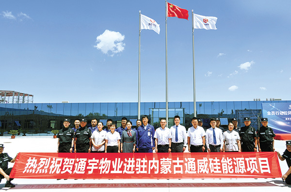 7月3日,隨著內蒙古通威硅能源首場升旗儀式的順利舉行,通宇物業正式進駐內蒙古通威硅能源項目,開啟內蒙古通威物業大基地管理的新篇章。升旗儀式后,通宇物業舉行了內蒙古通威硅能源項目進駐儀式。當日上午,項目升旗班團隊高標準完成了指揮部首場升旗儀式,獲得硅能源項目指揮長游書華的高度肯定。作為通威新能源產業的重要戰略布局,為確保項目順利推進,前期根據項目進度和切實需求,通宇物業團隊積極跟進對接,組建具有高效執行力的團隊,及時開展前期服務工作,全力保障項目建設現場的各項工作井然有序。