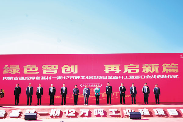 9月19日,內蒙古通威綠色基材一期12萬噸工業硅項目全面開工暨百日會戰啟動儀式成功舉行。在領導和嘉賓的見證下,通威股份副總裁、永祥股份總經理李斌宣布項目全面開工。