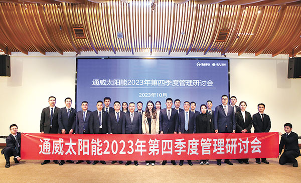 10月13日,通威太陽能成功舉行2023年四季度管理研討會(huì)。通威股份董事長(zhǎng)、CEO劉舒琪,通威太陽能總經(jīng)理周華等出席會(huì)議。劉舒琪董事長(zhǎng)強(qiáng)調(diào),2024年公司將面臨硅料、硅片、電池產(chǎn)能過剩的嚴(yán)峻市場(chǎng)挑戰(zhàn),希望電池端在今年第四季度及2024年工作中,進(jìn)一步加強(qiáng)內(nèi)部溝通與協(xié)作,在降本增效的同時(shí),堅(jiān)守質(zhì)量口碑,及時(shí)服務(wù)客戶,提升品牌形象,并持續(xù)保持與行業(yè)的動(dòng)態(tài)對(duì)標(biāo),在產(chǎn)品轉(zhuǎn)型同時(shí)重點(diǎn)關(guān)注效率提升。她鼓勵(lì)團(tuán)隊(duì)繼續(xù)發(fā)揚(yáng)不斷追求卓越的奮斗精神,堅(jiān)定信心,沉著應(yīng)對(duì)市場(chǎng)挑戰(zhàn),繼續(xù)保持行業(yè)領(lǐng)先的競(jìng)爭(zhēng)力。