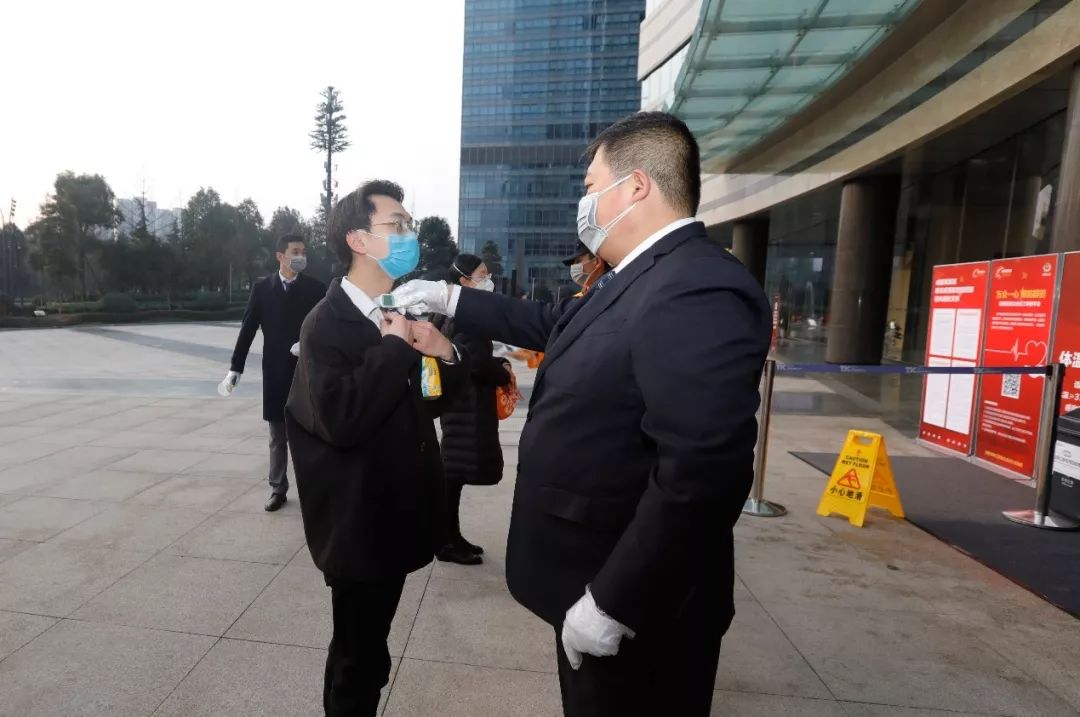 復(fù)工當(dāng)天,通威國際中心所有進(jìn)出口均鋪設(shè)了消毒地毯,對進(jìn)出人員、車輛進(jìn)行底部消毒;通宇物業(yè)工作人員在車輛入口登記、測量體溫,發(fā)放防疫抗疫溫馨提示,并提醒進(jìn)出大樓必須佩戴口罩;所有人員由東門統(tǒng)一進(jìn)入,工作人員通過查驗(yàn)通行證、對手部噴灑消毒液、測量體溫等流程,對人員進(jìn)行嚴(yán)格的防控檢查;大樓外圍、總部大堂、電梯、辦公區(qū)、餐廳區(qū)域等公共空間及用餐工具進(jìn)行了全面消毒,并在大樓電梯固定專人消毒;為保證舒適清潔的空氣環(huán)境,大樓空調(diào)系統(tǒng)進(jìn)行了相應(yīng)調(diào)節(jié),電梯轎廂空調(diào)只開啟送風(fēng)模式,在防疫的同時(shí)保持工作區(qū)域溫度;早餐時(shí)間,員工依次排隊(duì)在餐廳領(lǐng)取,并攜帶回工位就餐,午餐由餐廳工作人員統(tǒng)一配送至各樓層,在各自工位就餐。在保障大樓員工身體健康的同時(shí),桂溪街道辦、天華社區(qū)和物業(yè)人員還對通威國際中心的入駐企業(yè)進(jìn)行了走訪調(diào)查,詳細(xì)了解各單位復(fù)工人員身體狀況和相關(guān)防疫措施,杜絕交叉感染的可能性。