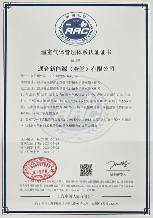 通合新能源(金堂)有限公司順利通過溫室氣體管理體系認證
