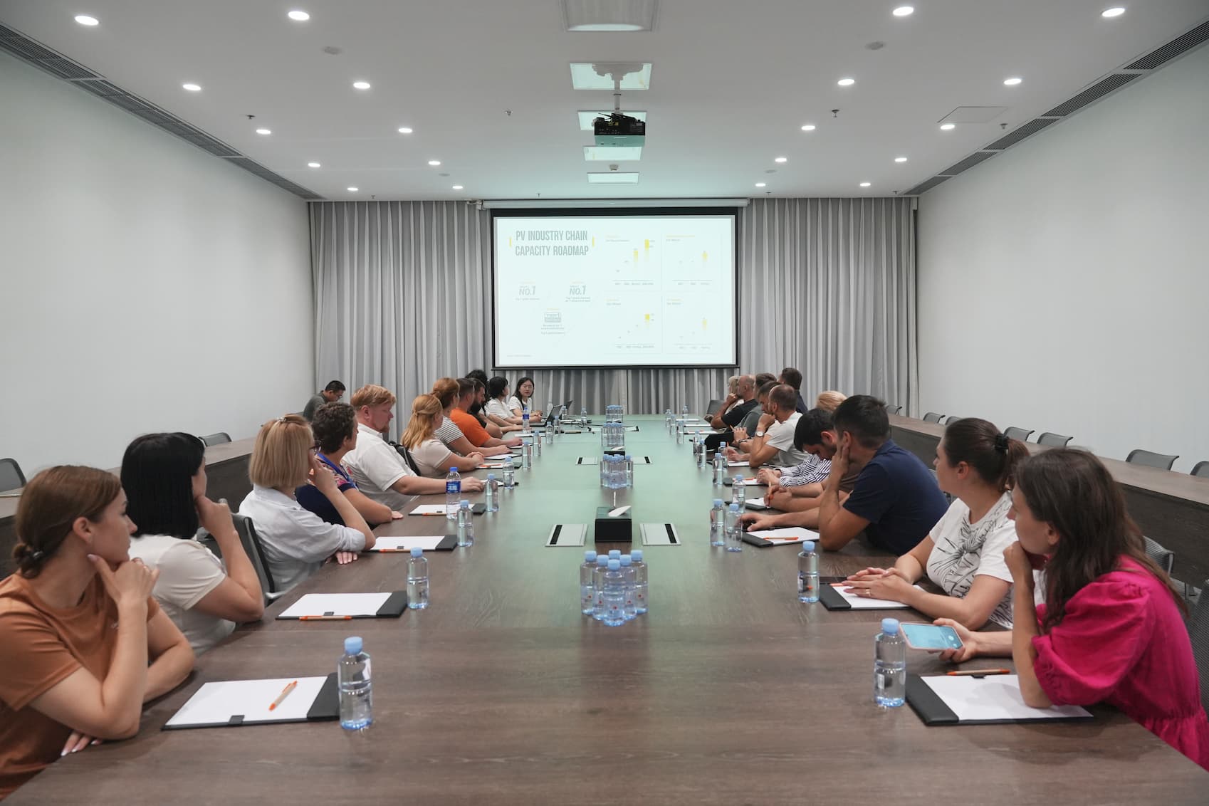 7月23日,摩爾多瓦政府辦公廳、能源部、國家可持續(xù)能源中心、電力公司等組成的新能源建設(shè)研修班一行30余人蒞臨通威太陽能(金堂)有限公司參觀交流,金堂公司人力資源部、質(zhì)量部、行政部相關(guān)負責(zé)人陪同接待。
