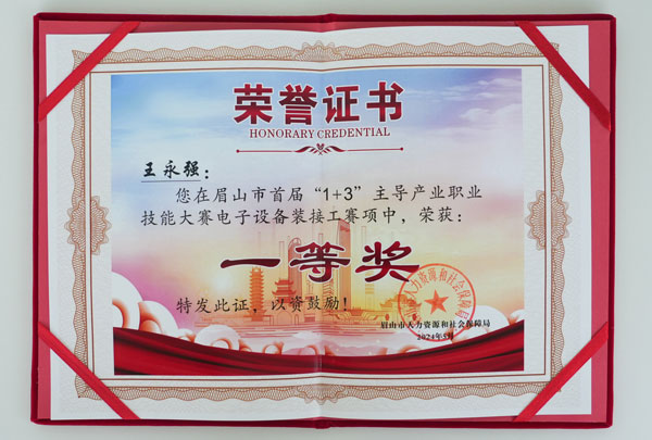 通威太陽能(彭山)有限公司員工榮獲眉山市首屆“1+3”主導產(chǎn)業(yè)職業(yè)技能大賽電子設備轉接賽第一名