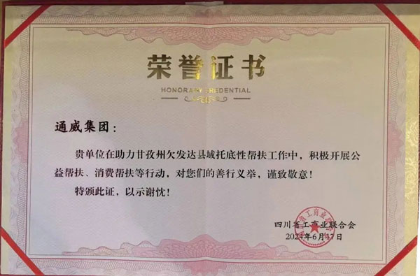 省工商聯(lián)向通威集團(tuán)頒發(fā)榮譽(yù)證書