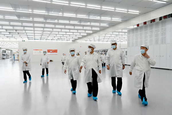 調研組領導一行深入彭山公司S1車間,近距離觀摩通威太陽能自動化生產線、智能化制造設備,對通威太陽能“智能工廠”“數字化車間”的實時運行情況進行了解,對公司的創新能力和生產管理水平給予了高度評價。