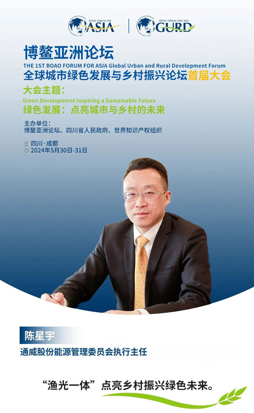 5月30-31日,博鰲亞洲論壇“全球城市綠色發(fā)展與鄉(xiāng)村振興論壇”首屆大會將在四川成都舉行。近日,博鰲綠色發(fā)展大會圍繞“綠色發(fā)展:點亮城市與鄉(xiāng)村的未來”主題,全球綠色能源轉(zhuǎn)型、企業(yè)在推動綠色發(fā)展中的挑戰(zhàn)與實踐、以及光伏產(chǎn)業(yè)在鄉(xiāng)村振興中的作用等問題,采訪了通威股份能源管理委員會執(zhí)行主任陳星宇。