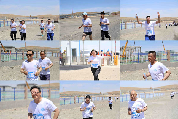 與此同時,在通威綠材(內蒙)項目現場,隨著一聲哨響,參賽人員沿著廠區跑道前行。大家用奔跑的方式共同守護健康,奔向健康生活。全體參跑員工跑出“起步就是沖刺”的拼勁和干勁,以精神抖擻的面貌和只爭朝夕的態度,迎接挑戰、做出成績,在通威綠材(內蒙古)投產百日沖刺關鍵期,跑出高質量,跑出新征程!