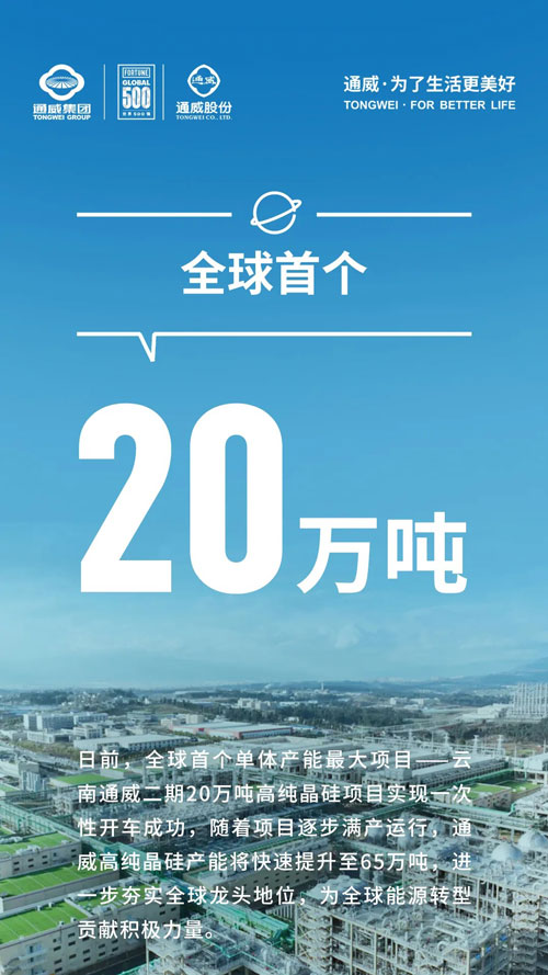作為目前全球首個、單體產(chǎn)能最大項目,云南通威二期20萬噸高純晶硅項目,產(chǎn)品各項指標(biāo)達(dá)到N型電子級標(biāo)準(zhǔn),隨著首批N型產(chǎn)品上市,再次彰顯了通威高純晶硅全球領(lǐng)先實力,為全球能源轉(zhuǎn)型貢獻(xiàn)通威力量,一組圖,帶您讀懂全球首個20萬噸高純晶硅項目。