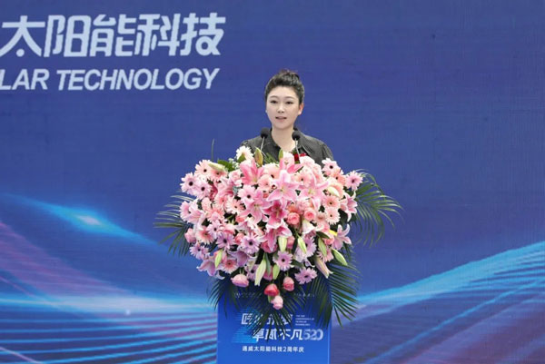 祁從峰副市長在致辭中,首先代表鹽城市委、市政府向通威太陽能科技成立2周年表示衷心的祝賀,向長期以來關心和支持鹽城經濟社會發展的領導和嘉賓表示衷心的感謝,并表示,通威太陽能科技鹽城基地實現了“當年開工、當年投產、當年營收過百億”,創造了新的鹽城速度、通威速度,為鹽城晶硅光伏產業發展作出了巨大的貢獻,希望通威太陽能科技能堅定扛起時代賦予的歷史使命,持續練好內功,永葆行業領先,不斷推動產能爬坡提升,鹽城將一如既往地支持開發區不斷優化營商環境,做好重大項目保障服務,以最高的效率、最好的環境、最優的服務,支持通威向新能源賽道全面進軍,共同書寫鹽城晶硅光伏產業發展新篇章。