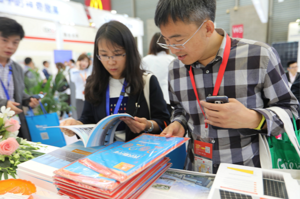 參展商翻閱通威太陽(yáng)能雜志