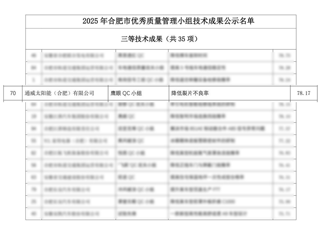 通威太陽能科技合肥基地榮獲合肥市質量管理大賽三等獎