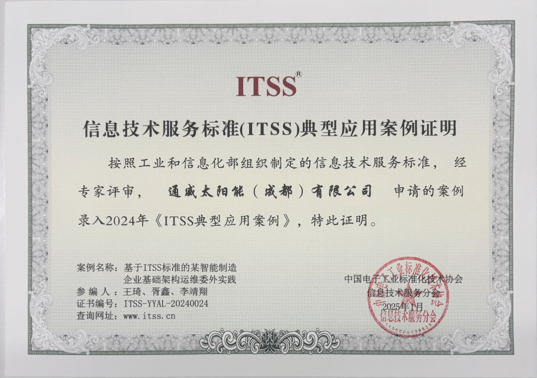 通威太陽能基礎架構委外項目成功入選 2024年《ITSS典型應用案例庫》