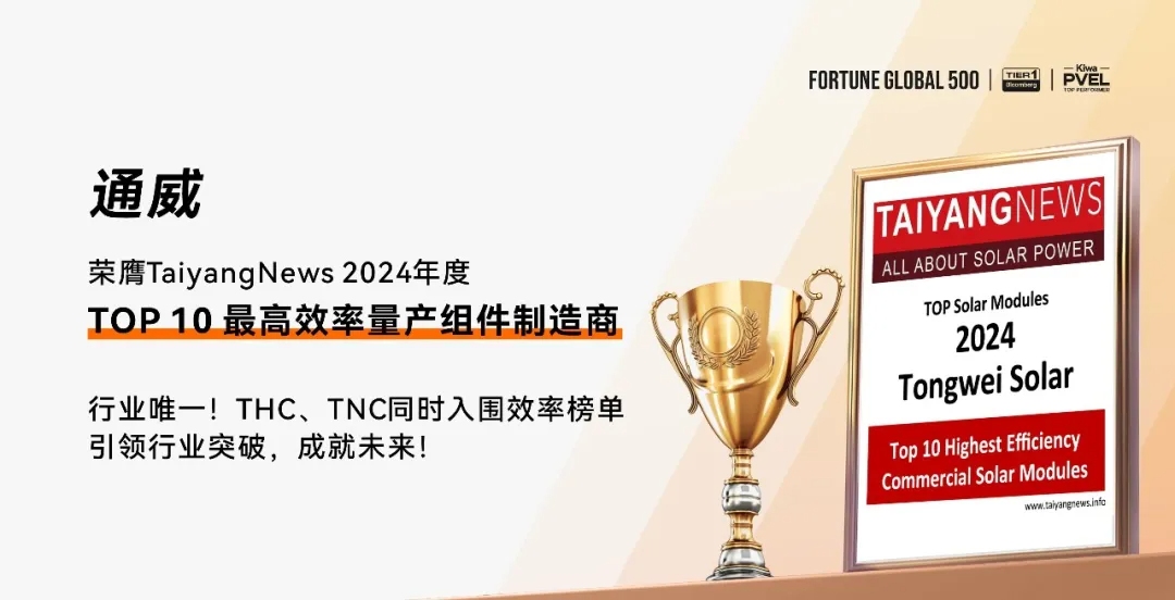 TNC、THC組件雙入圍!通威榮登TaiyangNews2024年度“TOP 10最高效率量產(chǎn)組件制造商”榜單
