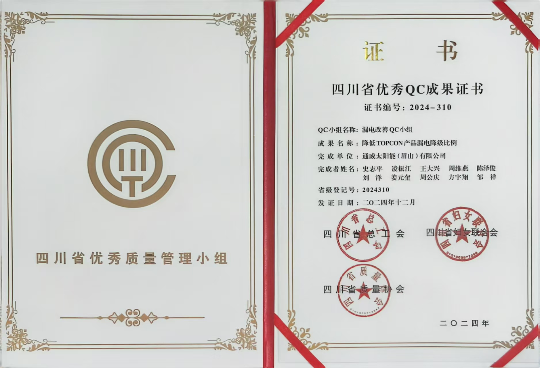 通威太陽能(眉山)有限公司 榮獲三項四川省優秀QC成果獎