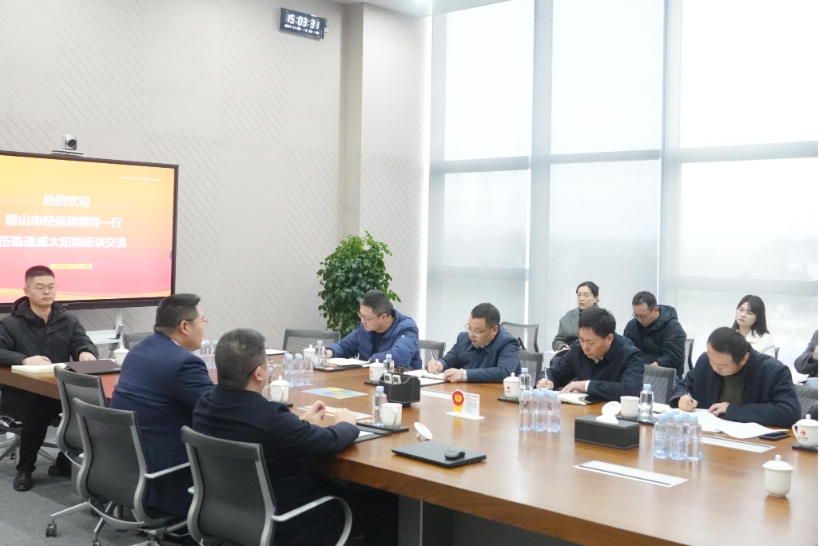 眉山市經信局局長車智勇一行蒞臨通威太陽能(彭山)有限公司座談交流