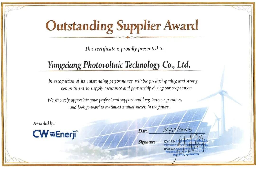 永祥光伏科技獲評土耳其CW公司年度優(yōu)秀供應(yīng)商獎