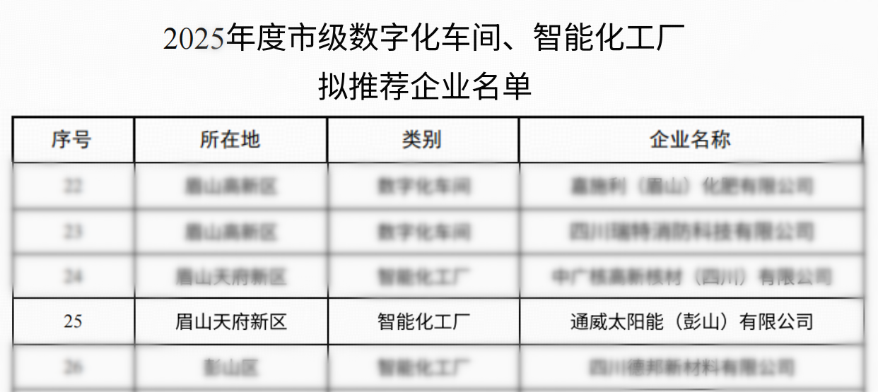通威太陽能(彭山)有限公司榮獲2025年度眉山市“智能化工廠”榮譽(yù)稱號