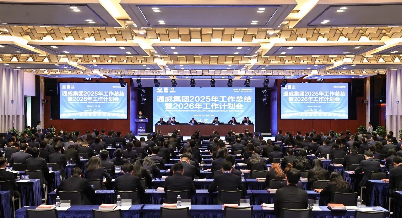 2月11日,通威集團2025年工作總結暨2026年工作計劃會隆重召開。全國人大代表、全國工商聯副主席、通威集團董事局劉漢元主席,通威集團管亞梅董事長、集團總裁禚玉嬌,通威股份董事長、CEO劉舒琪,副董事長嚴虎,農牧總裁、通威農發董事長郭異忠,通威集團副總裁胡榮柱,集團黨委書記、副總裁黃其剛,集團黨委副書記、通威股份董事鄧三,通威股份光伏首席技術官邢國強,股份副總裁、通威農發總經理張璐出席會議并在主席臺就坐。集團、股份管理總部各職能部門及各分、子公司負責人通過現場、視頻形式參會。大會回顧總結2025年經營管理成果,謀劃2026年發展大計,同時頒發了2025通威年度英雄團隊、通威集團“十佳標桿公司”、通威集團董事局主席特別嘉獎三大重磅獎項。