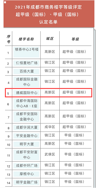 通威國(guó)際中心獲評(píng)中國(guó)首批國(guó)家標(biāo)準(zhǔn)超甲級(jí)商務(wù)樓宇