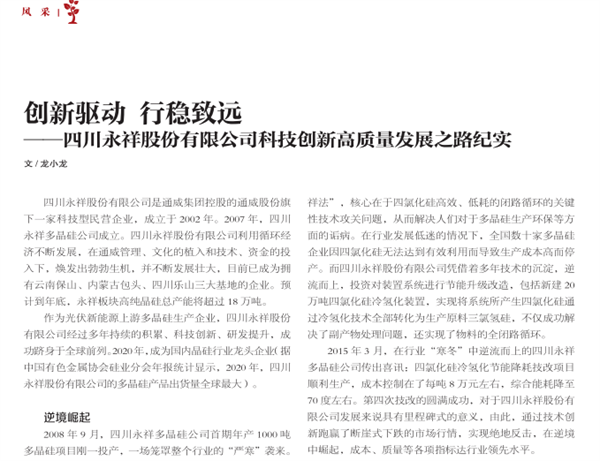 《四川勞動保障》雜志聚焦永祥創新高質量發展