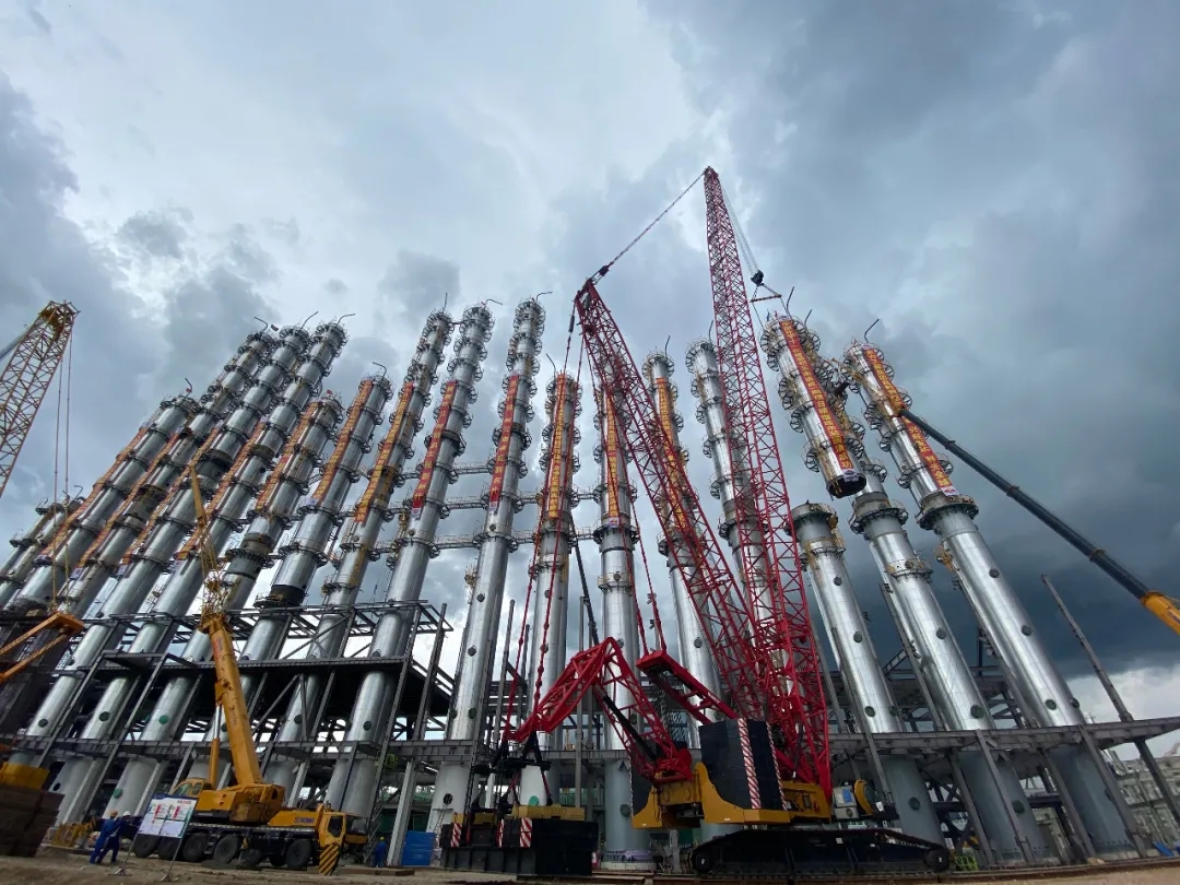 云南通威高純晶硅公司項目精餾裝置吊裝完成