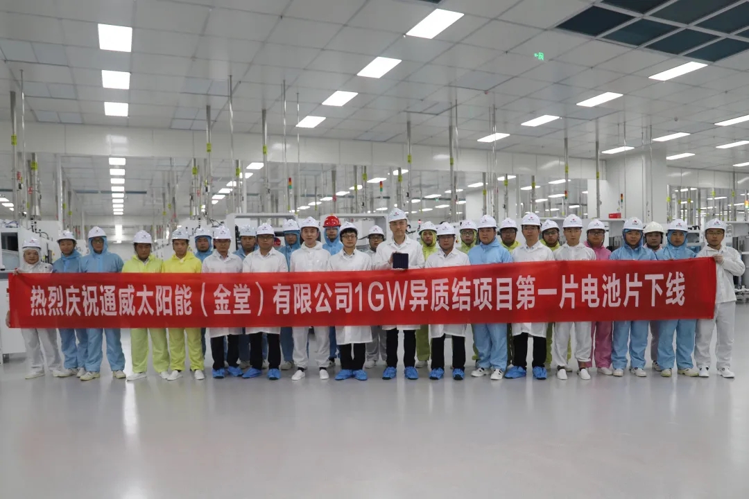 通威太陽能金堂基地1GW異質結項目第一片電池片下線