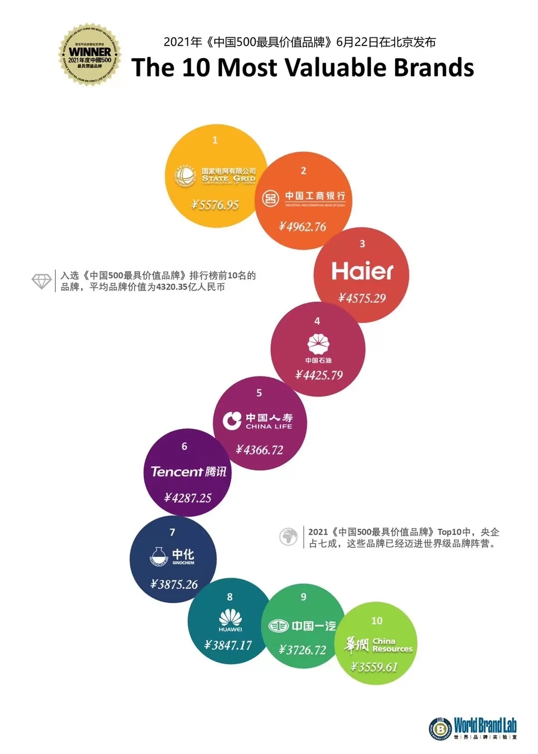 世界品牌實驗室WBL:2021年中國最值錢的100個品牌