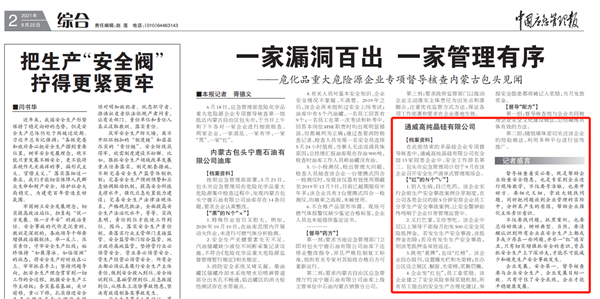 《中國應急管理報》點贊內蒙古通威“安全生產管理有序”